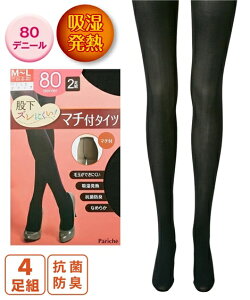 タイツ レディース 吸湿発熱 毛玉ができにくい 抗菌防臭 ずり落ちにくいなめらか80デニール 4足組 ベージュ/黒 JJM〜L/JM〜L ニッセン